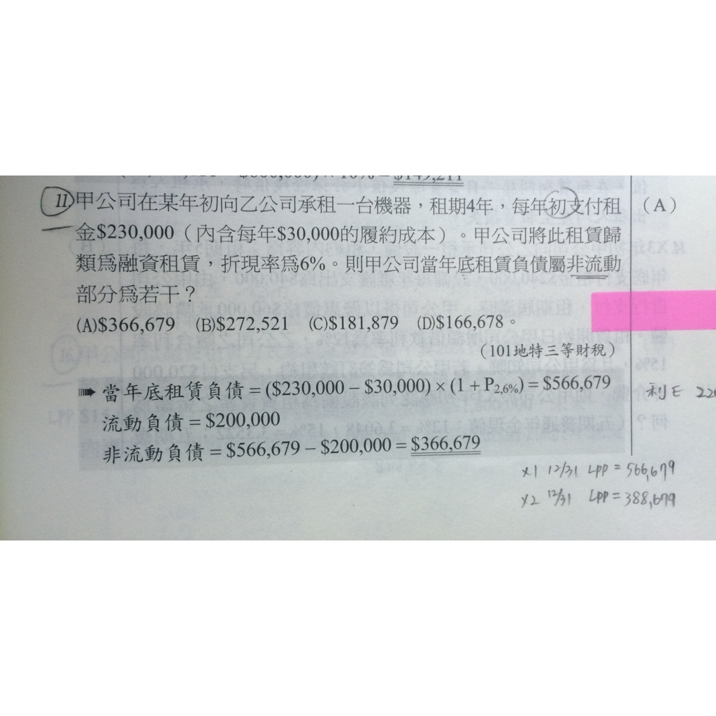 為什麼年底LPP屬於非流動負債的算法不能和第一題一樣呢?(我都用兩年底折現值相減)